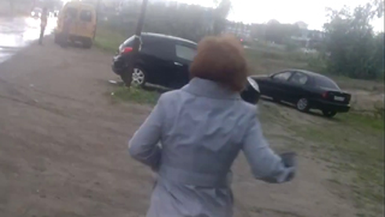 O soferita din Rusia a reusit sa se faca de ras in fata tuturor dupa ce masina ei i-a scapat de sub control.