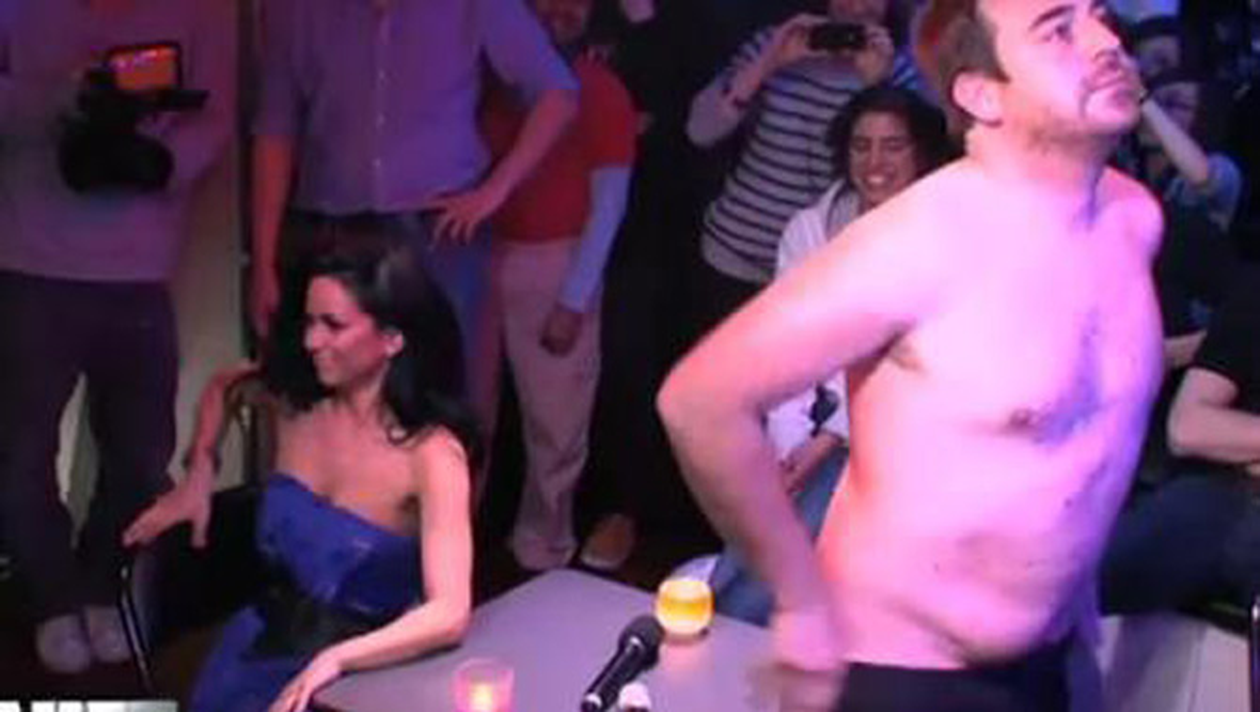 Fire vesela si pusa pe sotii, Inna a acceptat fara sa stea prea mult pe ganduri si a „iesit” cu cat mai multi barbati in cel mai scurt timp. „Intalnirile” au avut loc la sediul unui post de radio local si au fost filmate. Pe langa declaratiile de dragoste primite si cuvintele dulci murmurate, artista a avut parte de o surpriza: un pretendent la inima ei s-a dezbracat in fata ei si a celor care ii priveau, nefiind jenat sa stea doar in boxeri in fata frumoasei vedete!