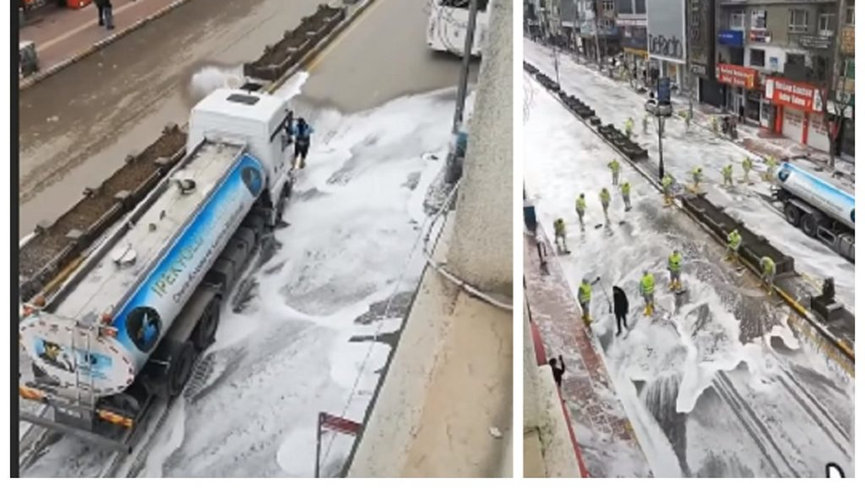 În Turcia, autoritățile au luat măsuri drastice pentru a reduce răspândirea virusului Covid-19, așa că au început dezinfectarea străzilor. Într-un clip video postat pe Facebook se vede cum o adevărată armată de oameni echipați cu echipamente de protecție, măști și mănuși ajută la curățarea străzilor, în timp ce un camion care merge în fața lor împrăștie spumă și dezinfectant pe jos.