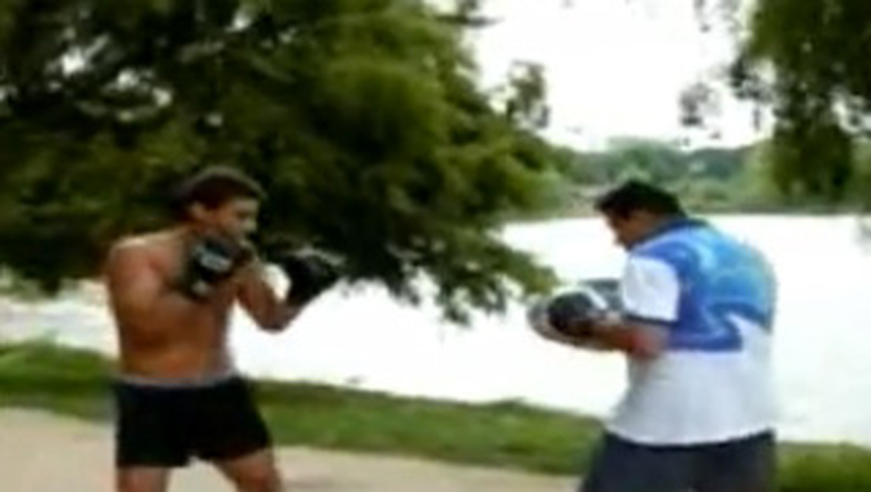 De aceasta data, vedeta Antenei 1 si-a testat calitatile fizice cu un alt boxer de renume, Marian Simion. Cei doi nu s-au confruntat in ring, intr-o sala de sport, ci in natura, in Parcul Tineretului.