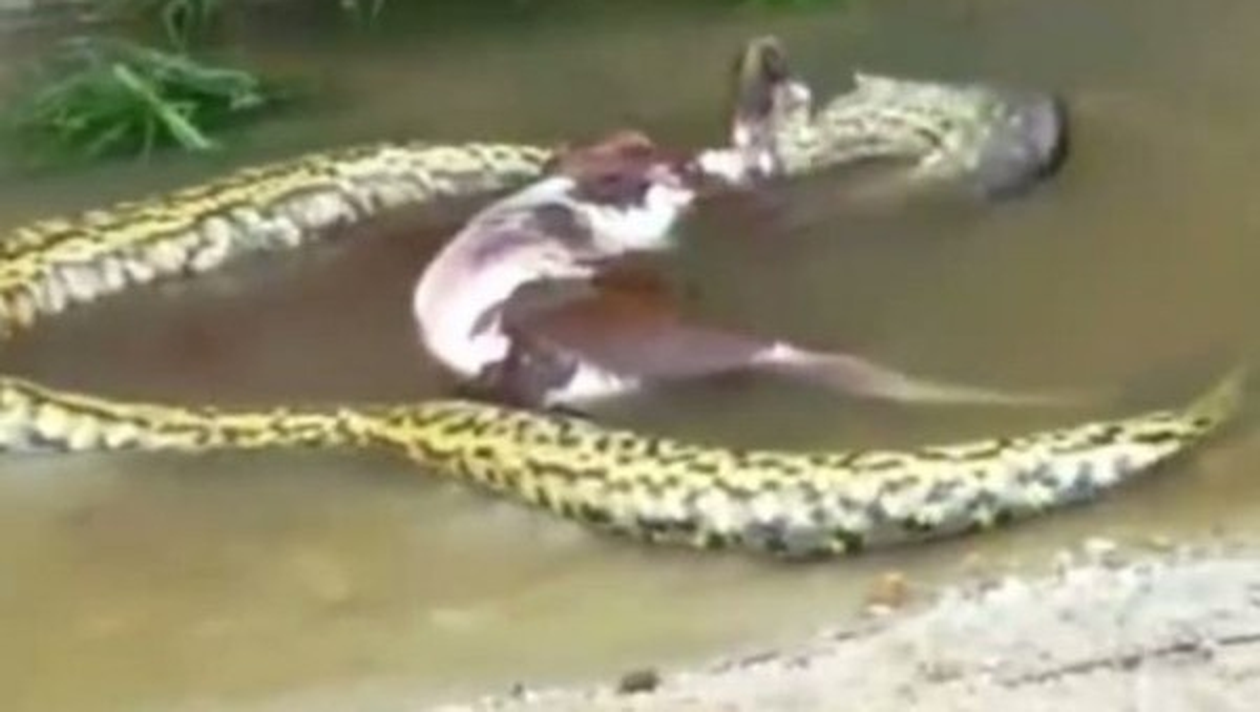 Un anaconda a prins un câine, s-a înfășurat în jurul animalului și s-a scufundat cu el. După câteva clipe, bietul câine avea să fie salvat miraculous de niște oameni, care au văzut ce se întâmplă.