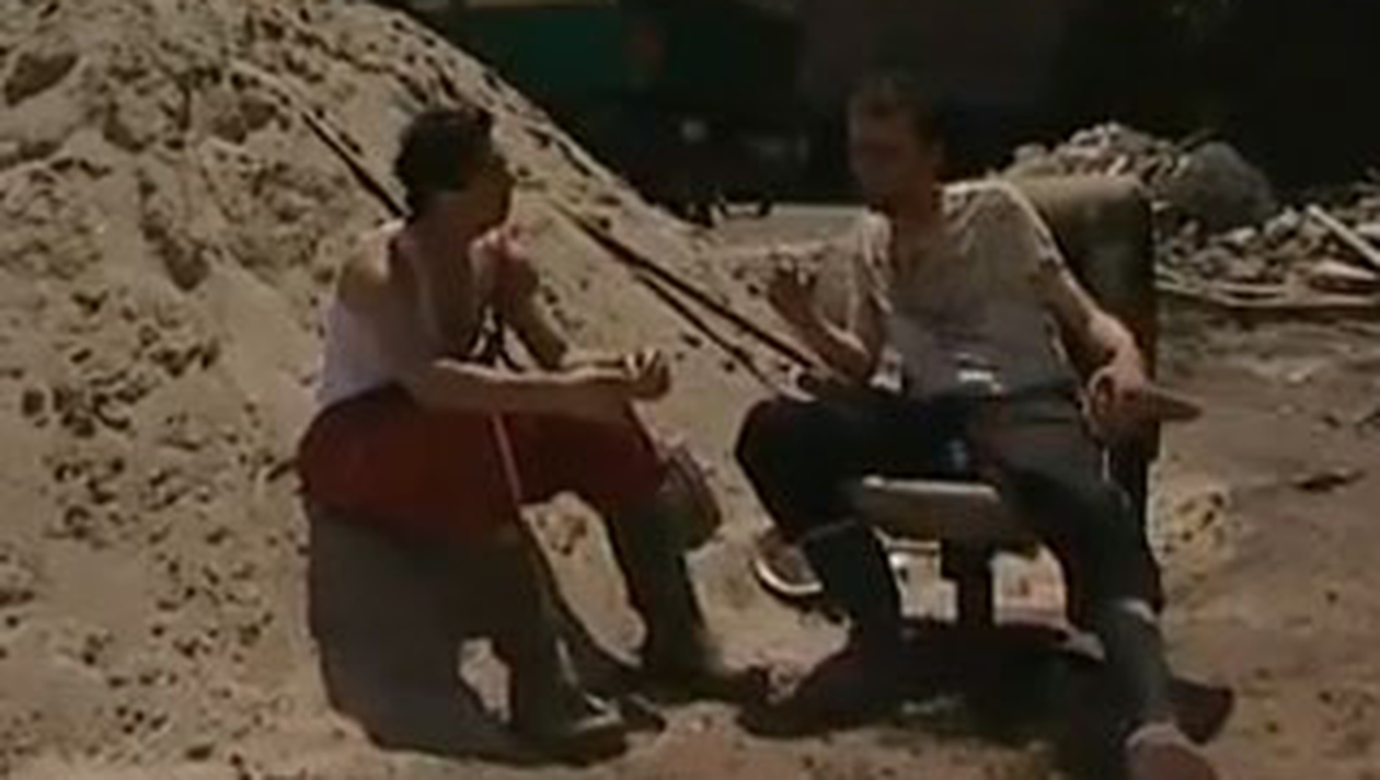 Doi salahori pornesc o discutie elevata in timpul unei pauze pe santier. Ei pornesc o dezbatere pe seama noii carti a lui Gabriel Liiceanu si a conceptiei filozofice a scriitorului, pana cand la orizont apare o duduie blonda.