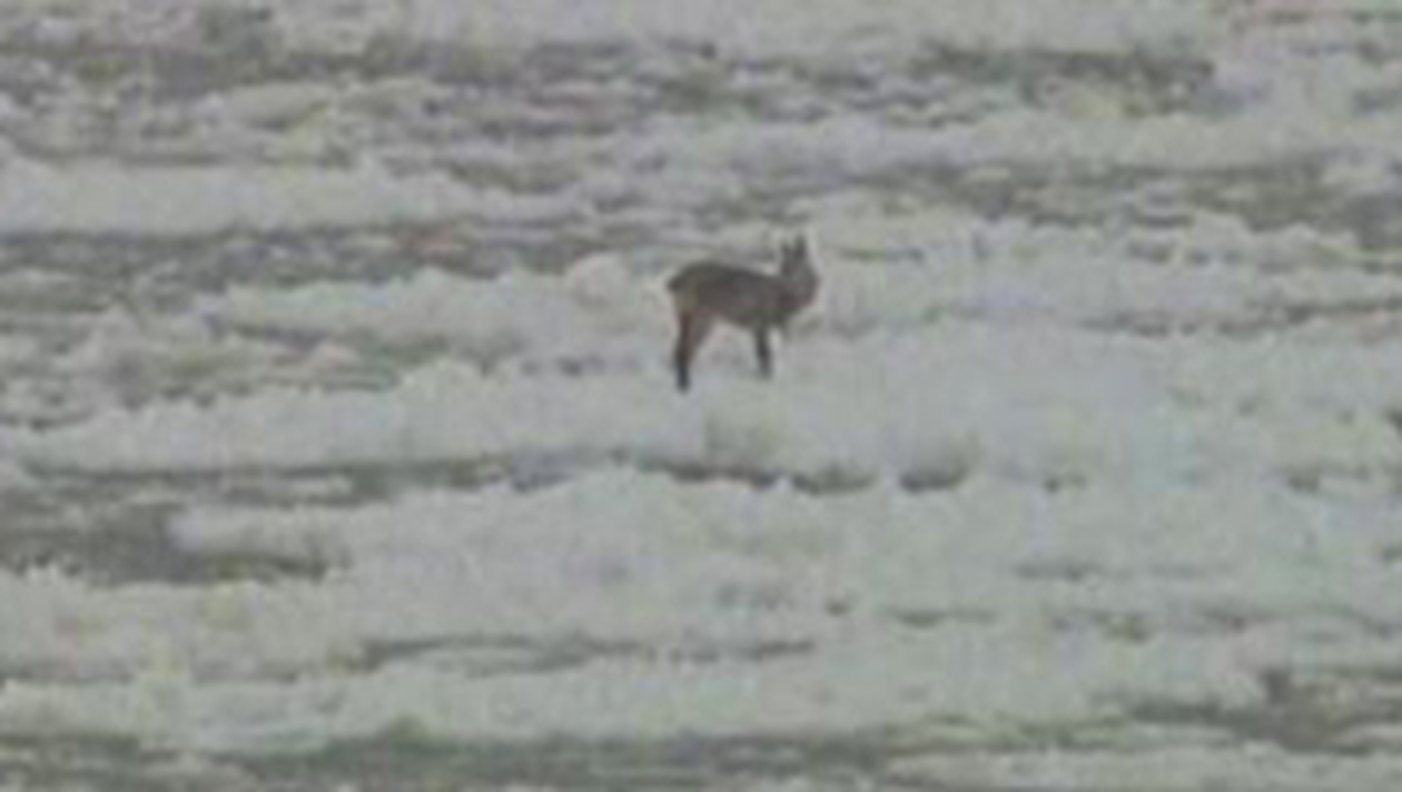 VIDEO Pompierii au salvat o caprioara care plutea pe o bucata de gheata in Marea Baltica