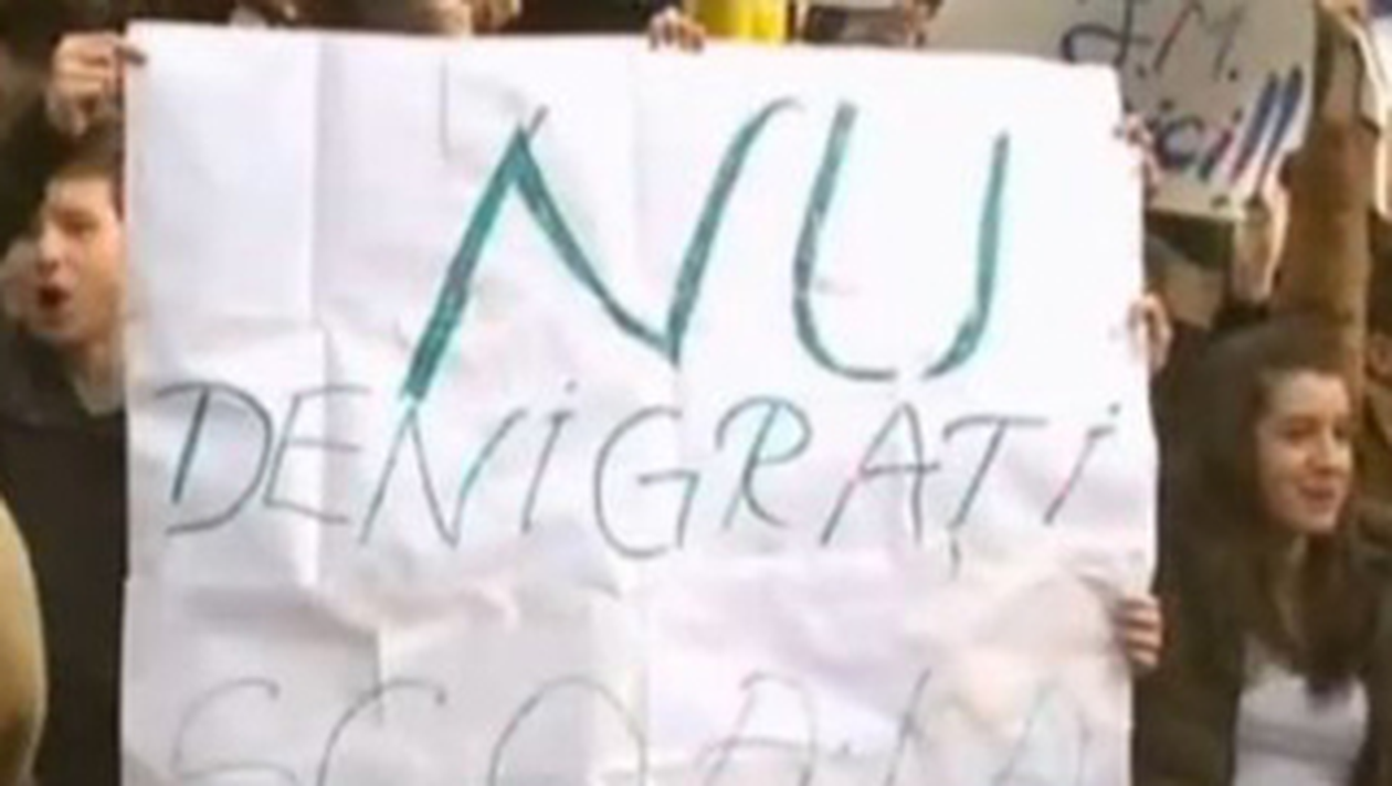 Elevii Liceului "Jean Monnet" au protestat astazi fata de hotararea ministrului Educatiei, Daniel Funeriu, de a demite conducerea scolii, in urma scandalului din excursia de la Predeal.