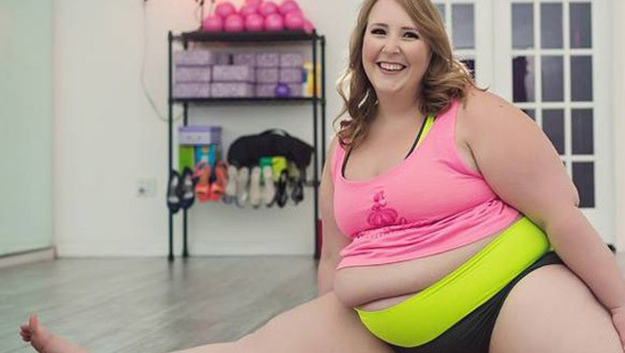 Femeia in varsta de 25 de ani, sufera de obezitate si cantareste 150 de kilograme. Ea a decis sa danseze la bara pentru a slabi si pentru a incuraja oamenii care sufera de aceasta boala sa faca la fel.