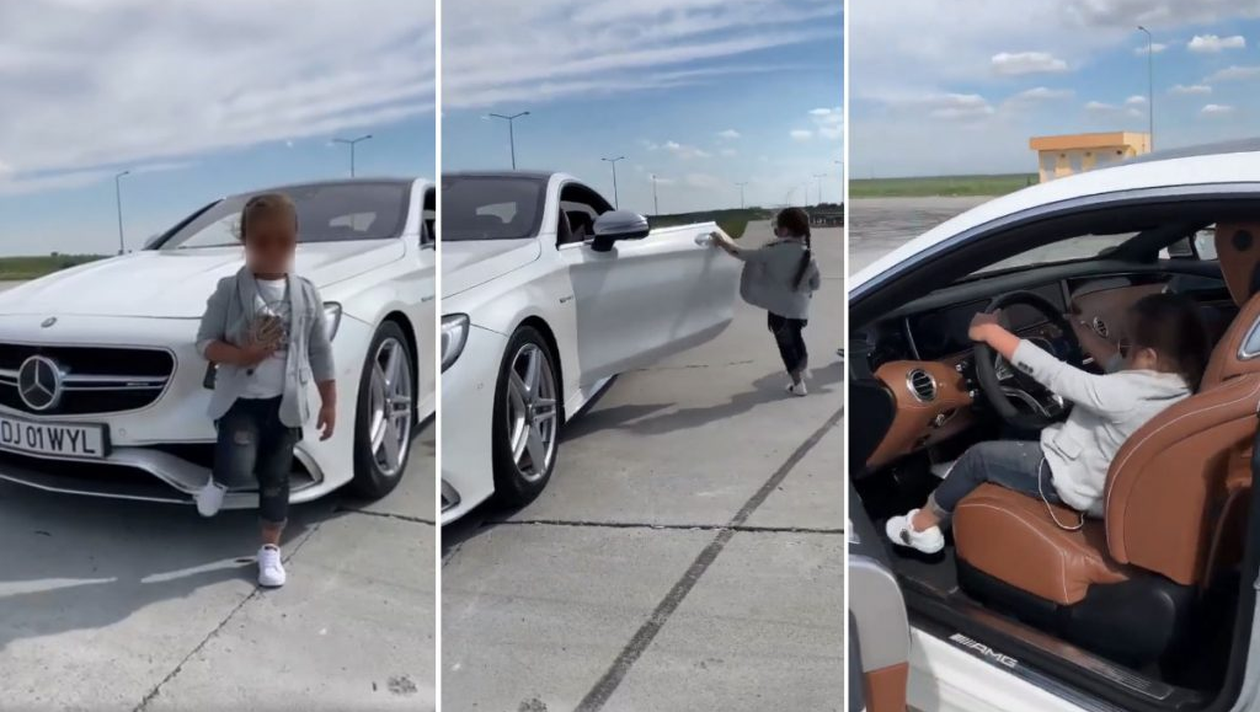 VIDEO ȘOCANT. Un copil de 5 ani din Craiova conduce singur Mercedesul de lux al tatălui său