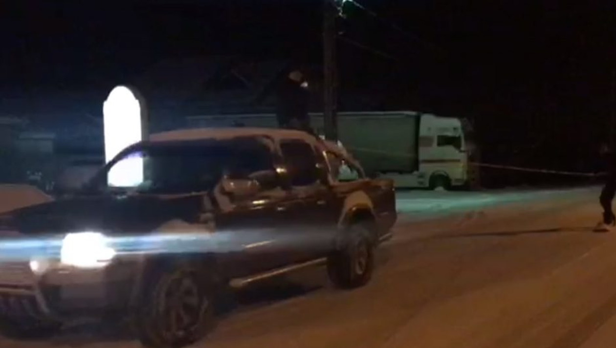 Imaginile au fost filmate, pe o stradă din oraș. După experiența periculoasă, nimeni nu a avut de suferit. Zăpada a cuprins, noaptea trecută, tot județul Gorj.