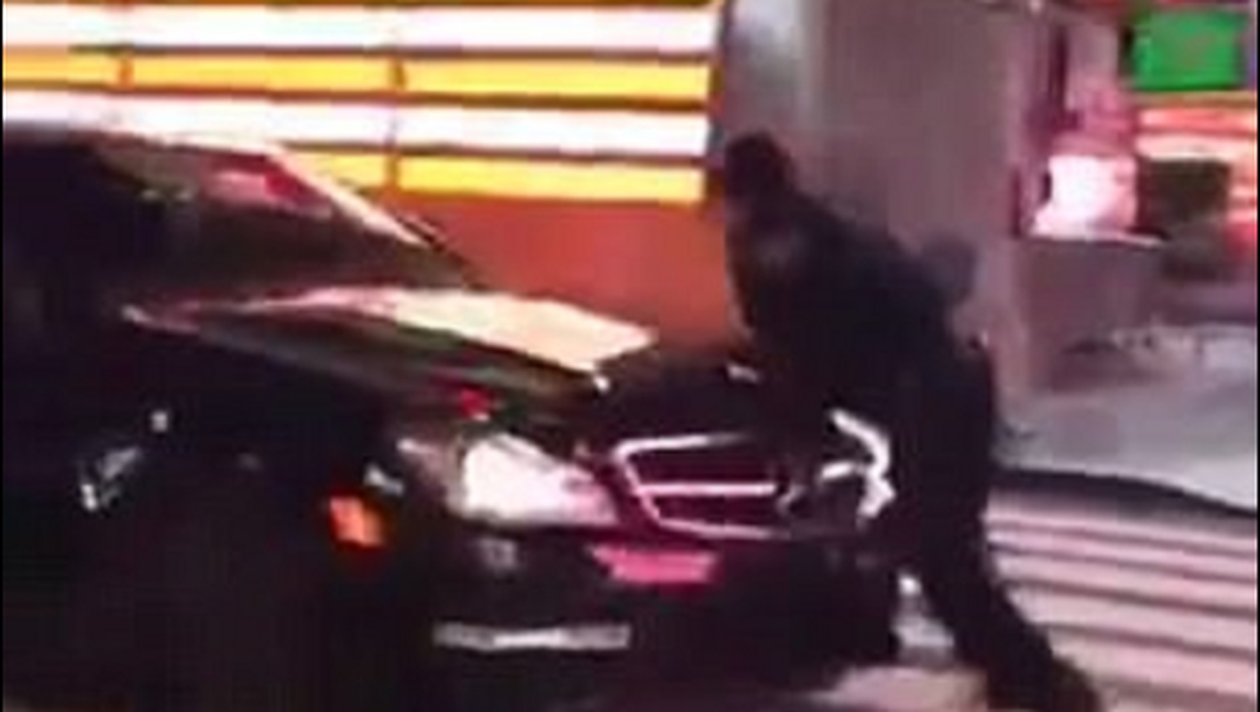 Poliţistul a observat că acesta făcea scheme cu maşina în piaţa Times Square din Manhattan, New York, şi a încercat să oprească maşina. Şoferul nu a ezitat şi a intrat cu bolidul în poliţist.