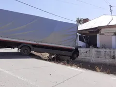Un grav accident rutier a avut loc, luni, într-o comună din Dolj. Pe DN6, în Brădeşti, conducătorul unui TIR, care mergea către Filiași, a încercat să evite impactul cu un autoturism staționat pe prima bandă, a acroșat totuși mașina și a părăsit partea carosabilă, lovind în plin un imobil. Vezi mai jos înregistrarea accidentului.