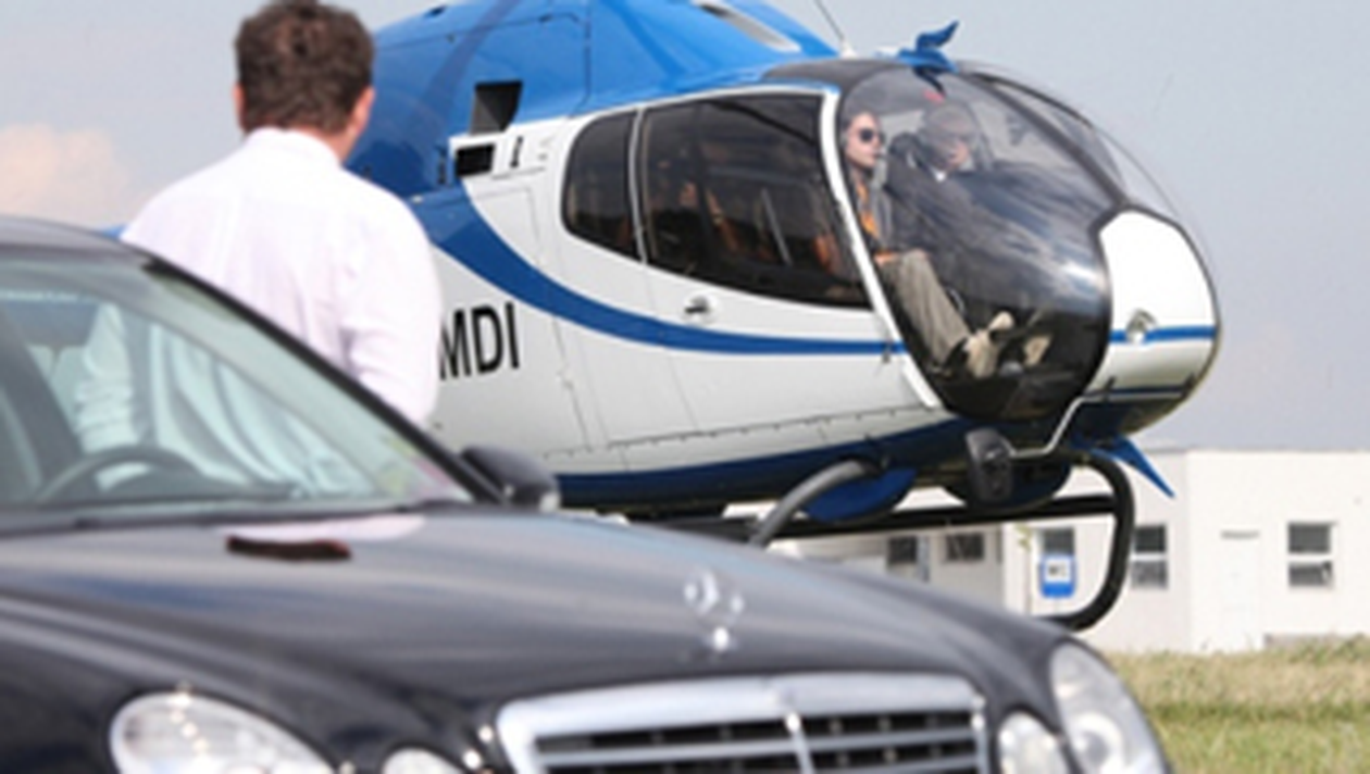 In promo apar cinci masini de lux negre si doua elicoptere, care au atras toate privirile curiosilor.
