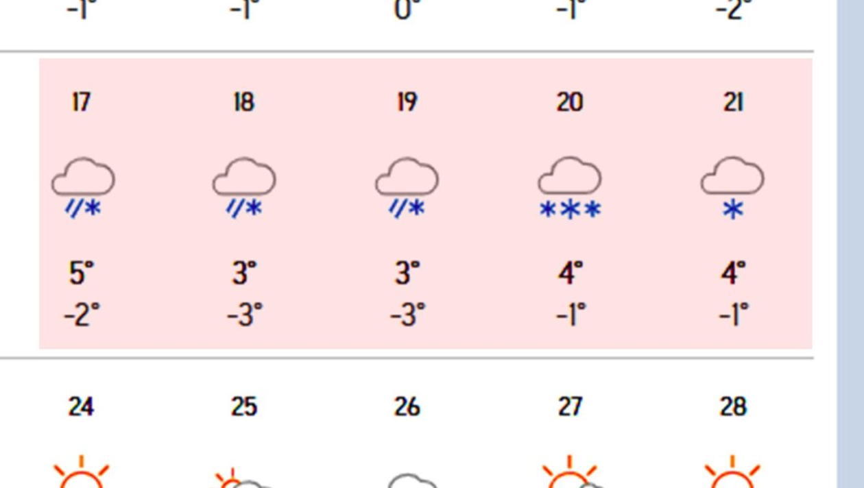 Conform estimărilor meteo, ninsorile ar urma să înceapă de săptămâna viitoare și să dureze aproximativ cinci zile la rând, în intervalul 17-21 martie. În această perioadă sunt prognozate precipitații sub formă de ninsoare sau lapoviță, iar temperaturile maxime vor coborî spre 3-5°C, în timp ce minimele pot ajunge până la -3°C.