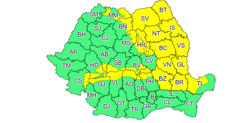 Cod galben în Moldova, estul Transilvaniei și zona Carpaților Orientali