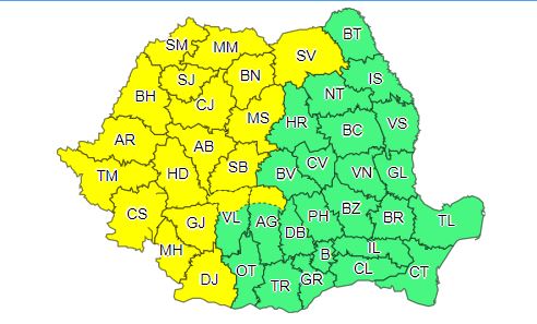 În intervalul 29 august, ora 12:00 – 30 august, ora 10:00, vor fi perioade cu instabilitate atmosferică accentuată în Banat, Crișana, Maramureș, vestul Olteniei, în cea mai mare parte a Transilvaniei, nord-vestul Moldovei, în Carpații Occidentali, în nordul Carpaților Orientali și local în Carpații Meridionali. Vor fi averse torențiale, descărcări electrice, intensificări ale vântului și pe alocuri vijelii și grindină. În intervale scurte de timp cantitățile de apă vor depăși 25…40 l/mp.