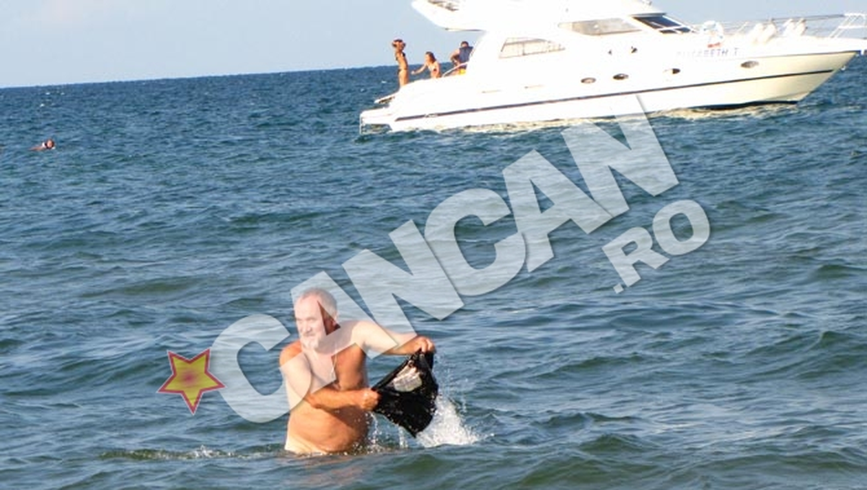 Omul a intrat in mare, si s-a gandit ca acolo este locul ideal unde ar putea sa isi spele slipul. Nu a tinut cont nici de tinerii care se distrau pe plaja si nici macar de iahtul care trece la numai cativa metri de el. Si-a vazut linistit de treaba. desi era gol, iar miscarile apei au lasat sa se vada la lumina partile intime.