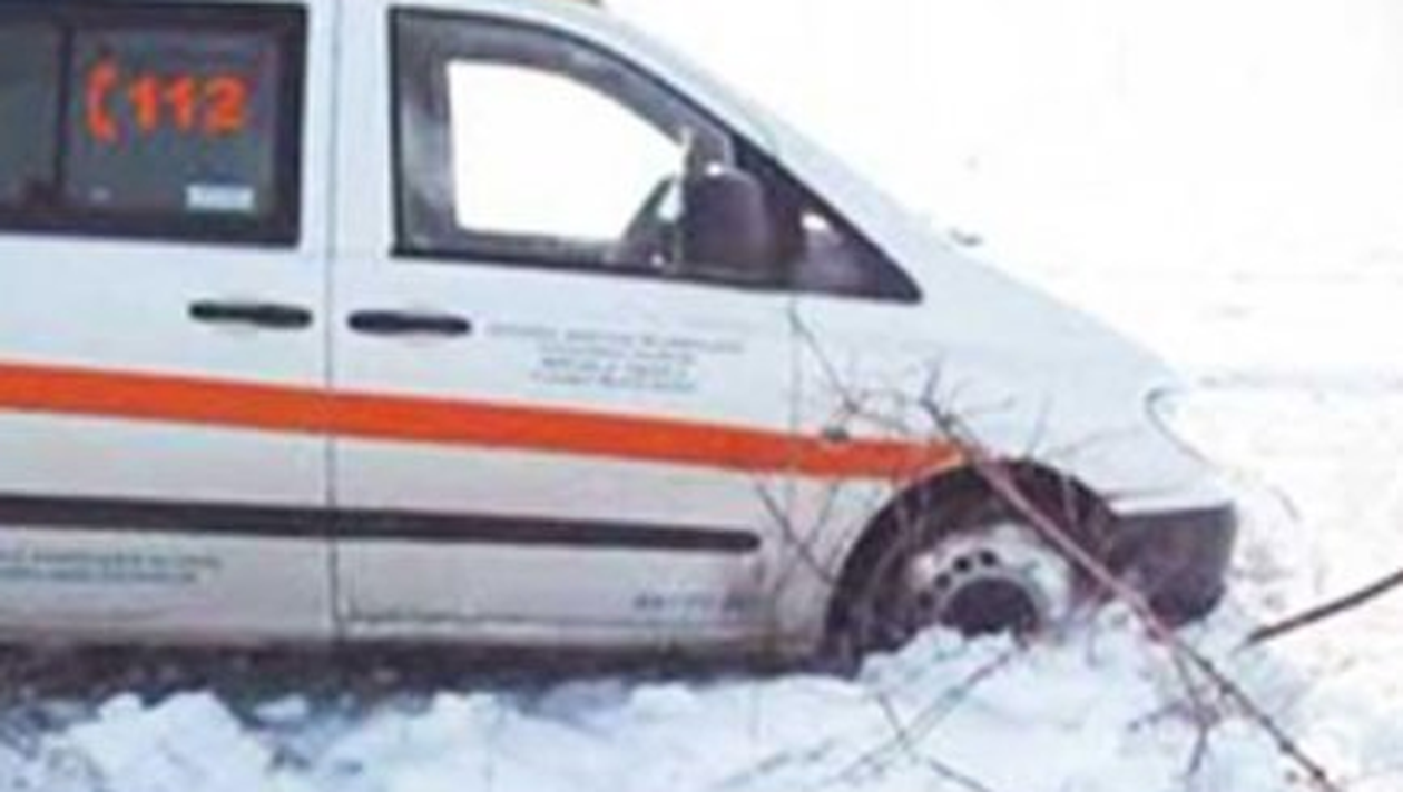 O ambulanţă cu trei copii din judeţul Vaslui care erau transportaţi pentru dializă la un spital din Iaşi a rămas blocată, sâmbătă dimineaţă, într-un şanţ de pe marginea unui drum judeţean, după ce autosanitara a derapat din cauza poleiului de pe şosea.